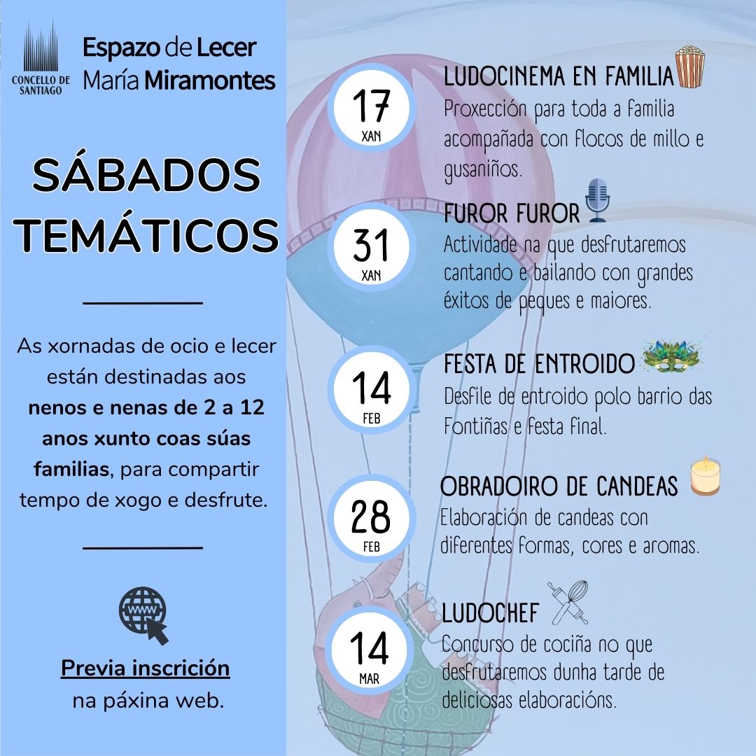 Actividades temáticas dirixidas a nenos e nenas entre 2 a 12 anos acompañados das súas familias.